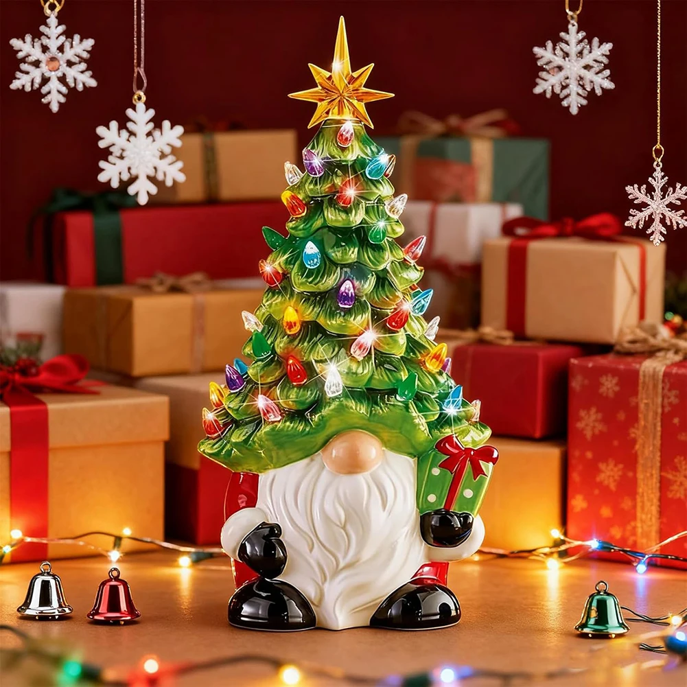 Wide Applications Gnome Tree: Elevating your festive decor with this resin gnome xmas tree. Its lights instantly create a cozy ambiances, making it a great addition to your dining table, family room, or school